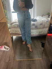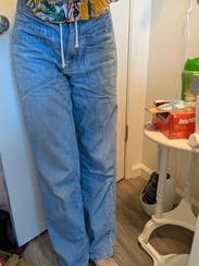 In love with these jeans!!! They are such a casual, comfy and easy throw on. This was my first time renting bottoms from this brand so I picked my size on a whim. The 34 is super comfortable and allows for a more fitted feel through my waist and hips- given the drawstring I could definitely size up for a more oversized feel/roomier fit in the waist. I’m 5’1 and the length of these were long on me so I cuffed them to make them petite friendly. These are a great more casual every day wear jean- the denim is super lightweight and not stiff!