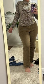 This is a very fun top that is flattering with dress pants or jeans. Soft material and comfortable to wear.
