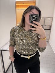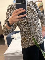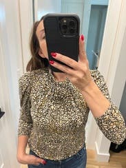 Great top! Wonderful for layering. Was worried it was too mock-neck for spring but it's more of a twisted neckline so seasonally appropriate. Great print with not being too floral.