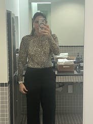 This blouse was my go to for work and dinner out. It went great with jeans or dress pants and is soo comfortable!