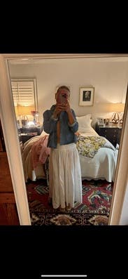 I didn't end up wearing this as often as I expected but it is cute - the proportions are just a little off for layering like I wanted. It flares out a bit at the bottom so I didn't love it over a dress. High waisted white denim was my favorite combo. Also the bottom hem curls up- I could not get it to lie flat.