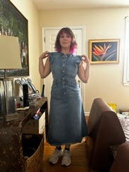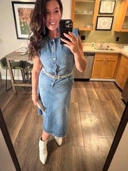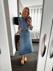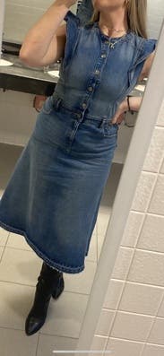 Loved this denim dress to wear to the office. Paired it with some western style boots and a fun necklace. I would rent this again.
