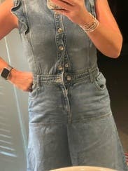 Wore several times and loved it each time. Denim is a bit stiff and difficult to button at the waist.