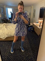 This is such a flattering comfortable dress. Great for our Kentucky Derby themed party.