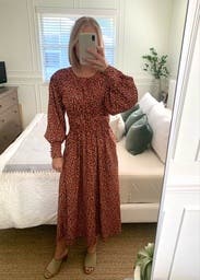 I loved this dress! It was flattering with the clinched waist and the color was beautiful. The details were perfect and it's very modest.