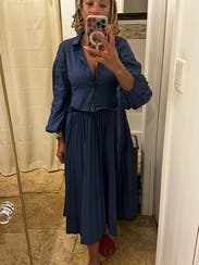 Wore it for a luncheon. Felt like you could dress it up or down. Waist isn’t fitted, but top fitting makes up for it so it doesn’t look like a paper bag.