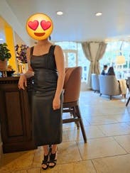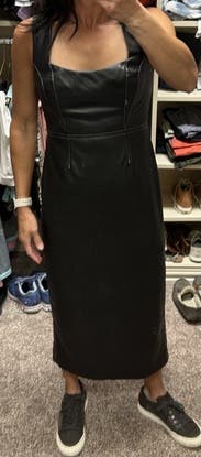 Pictures do not do it justice. I wish I could buy it but then I would wear it too much. The dress felt great, was flattering, perfect fit for me. I wore it to a work event and people kept saying “did you really wear a leather dress?!?” Yes!