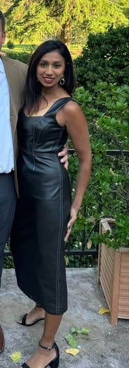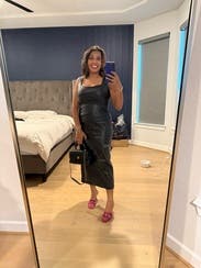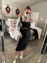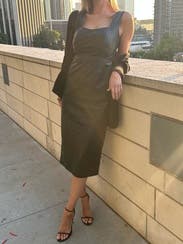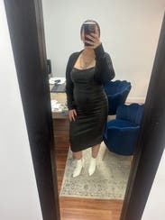 I absolutely loved wearing this dress! It fit perfectly—comfortable yet flattering, striking the perfect balance between sexy and sophisticated. I received so many compliments while wearing it to a tradeshow. The material felt great, and it allowed me to move comfortably throughout the day. Highly recommend for anyone looking for a chic, polished look!