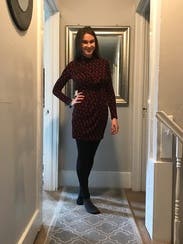Great fit, comfortable material. Received several compliments. I wore it with tights and black boots.
