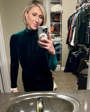 I wore this dress to a semi-formal company holiday party. First time wearing velvet! I loved the long sleeves, and the weight of the dress was perfect - warm but not heavy. I hoped to get a 16 but it wasn’t available, so I went with sizes 14 and 18. The 18 would have definitely helped with length, but felt too loose. The 14 fit like a velvet glove. I felt great in it, but worried all night that it was hiking up. Still giving 5/5 despite my issue with the length, because - hello - MINI dress. I knew what I was signing up for! Overall I felt great, loved the color, and it was very comfortable.