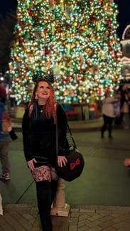 This dress hugged every curve of my very curvaceous body perfectly and hid the less favorable parts of my tummy at the same time. It’s on the short side but never rode up and I felt fancy, chic, and sexy. Yes- I did wear it at Disneyland for the holidays. Would have kept if it weren’t quite so $$$$. But don’t sleep on this dress!