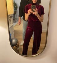 I got so many compliments on this jumpsuit throughout the evening. I wore it as a groomsman outfit for a wedding and it fit so perfectly and was extremely flattering. I was worried it might look strange on me since I have violin hips but I felt confident and like my best self all night.