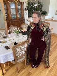 I rented as part of my devil costume for Halloween and it was awesome! The material is a heavy weight velvet with nice stretch, very comfortable. It has a really cool drape the comes down over one leg that gives a half dress feel, and adds an unexpected detail that sets this apart from traditional pant suit.