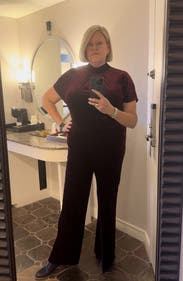 This was so fun to wear and I got tons of compliments all night. The 6 was a tiny bit snug in my hips but I had also ordered the 8L which was too long. I was worried about the pants not being long enough but the length on the regular ended up being just fine.
