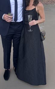 A modern marvel in dramatic textured stretch jacquard, the Black Halo Cayetana Gown sweeps into the room with graceful movement and striking side-slit drama. Seasonless and effortlessly versatile, style it with barely-there heels for sleek evening allure or clean-lined flats to keep things cool yet elevated.