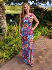 I rented the 4 & 6 (I'm a 3/4 in jeans). The 4 didn't quite zip, so obviously I went with the 6. The fabric is thick and so flattering. The slit on the leg and the single shoulder strap make for a daring look but I love that my boobs are covered!! The print was bold and it came out great in pictures.