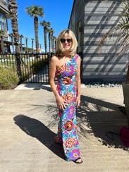 Super comfortable and dance floor friendly! Very flattering. I love the large print and bring colors!!!