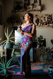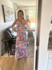 Wore this to an Indian black tie wedding to match the energy of the beautiful bright colors of the wedding and received lots of compliments! Fit was snug but flattering. Would wear again!