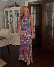 I wore this dress for the formal night on a cruise. I absolutely loved this dress and got several compliments! I could have used the petite length (wasn’t available), but just picked it up when walking and was fine.