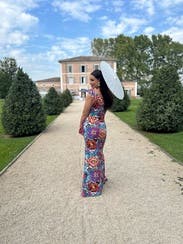 This dress was just the best. It was a huge hit at a late summer formal wedding, super comfortable, and incredibly flattering. Colors were bold and the fabric had just the right amount of stretch. I’m 5’5” and the 2P was perfect with flats. Tried the 4L (that’s what was initially available) and would definitely have needed hem tape. The 4 was a slightly looser fit on my frame and would have worked but I liked the form fitting of the 2.