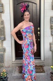 What a fabulous dress!! So many compliments and it worked perfectly for my friend's derby-esque wedding ! Great material, structured and form fitting. The colors are so vibrant the pictures do not do it justice. The strap stays in place and is cut well for a strapless bra. I'm 5'8 and the 16L just reached the ground with a nice heel. Functional split, helps with mobility without being to high. It's great, RENT IT!