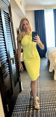 The perfect dress! The material is amazing, the fit is so flattering, and the yellow is a great color especially for summer!