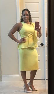 This dress looked amazing. It complimented my curves. A perfect spring color. Would definitely wear it again. I got soo many compliments.