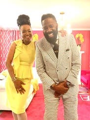 Black Halo never disappoints and this dress is no exception to that outstanding track record. The color is yellow, it may look different in photos but in real life , it's yellow and anything but mellow. Because the color is eye-catching this isn't an ideal dress to wear if you want to blend into the background. The material is a light textured crepe that moves and breathes and is perfect for summer. The ruffles accentuate the good and hid food babies. A great dress and will rent again.