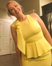 I love the bright yellow color of the fabric and how it lays on your body. The asymmetrical ruffle of fabric on the right side adds some interest to an otherwise plain dress. I received many compliments on the dress!