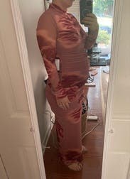 Perfect amount of stretch! This piece for my body perfectly. And it was mew with tags! 👏🏽 The spilt is pretty gig, so be mindful of your undergarments.