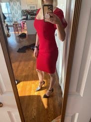 This dress runs small, so I sized up. It looked great except for the “needs a demi-cup” neckline. NSFW.