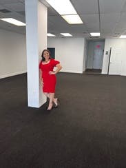 Perfect fit. I wore to a dinner and evening event in Palm Beach. I would not have selected this to wear with clients. The poof sleeves accentuate the dress perfectly. Would decide rent again.
