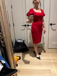 I really enjoyed this dress. The red pops in such a fun way and I felt like it was extremely flattering. I ordered the 8 and the 10. The 8 fit well, but I was a little more comfortable with the 10 for lifting it up to go to the restroom.