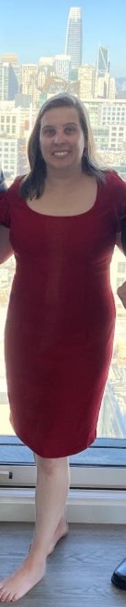 Super comfortable, the material was so nice I didn't need spanx. Loves the puffy sleeves. I'm 5'2" and 34D fit perfectly. Liz 626-755-4399
