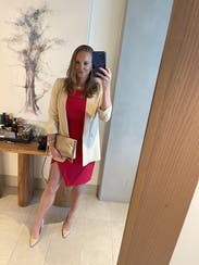 Wore to a conference- loved the pop of color and got. Very flattering. I forgot my body shaping items but it didn’t matter- the cut of the dress was very forgiving. Kind of obsessed with this brand now