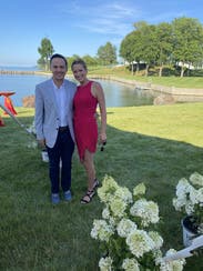 The dress was beautiful it is definitely more of a fuchsia color in person and not red. The slit does still pretty high at the lake when you sit down so I wouldn't recommend for a work meeting. The floor was a little big in the chest and arm area but overall it was nice.