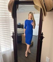 Unfortunately the event I got this for was canceled but I still enjoyed every moment of trying on this dress. It made me feel like Jackie Kennedy, Kate Middleton, and a Democratic nominee all at once. It is as empowering as stunning. It fit perfectly but not too curve hugging so it was still professional. Great length for a long legged woman.