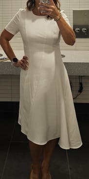 Beautifully formed dress. Very white made me extremely conscious of eating or sitting in something! Lots of compliments in this dress!