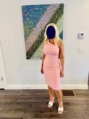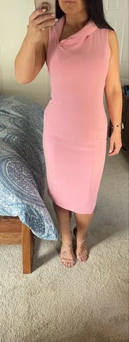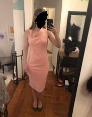 Rented this dress for a daytime occasion but ended up wearing a different dress. This one was loose in the bust and tight in the hips for me. The pink was more "bubblegum", brighter than expected - I def would not call it "pale pink".