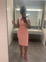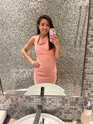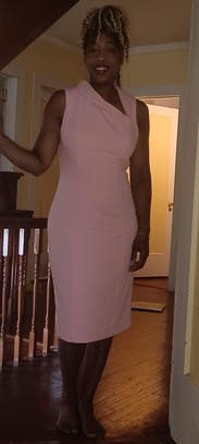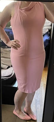 Huge disappointment! The quality and fabric of this dress is not great. It appears to be sweatshirt like fabric that is not very classy. Again, another sheath that is way too tight. This is me wearing shapewear and I couldn’t sit down at all. I had to send it back.