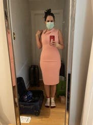 I loved this dress, beautiful color and neck line. But I could not find a jacket that looked ok with it so I did not wear it to work. Will consider renting again for a cocktail party.