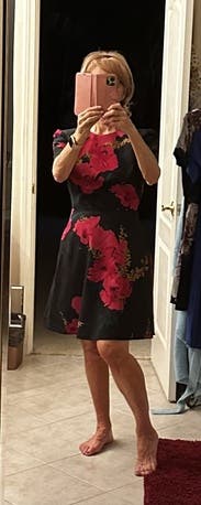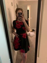 Rented for a wedding and wanted a dress I thought would work when I want sure what size I would be (haven't dressed up in over a year). This was perfect. Loved that it had pockets, and the flower pattern was great! Perfect length and the crew neck made it easy.