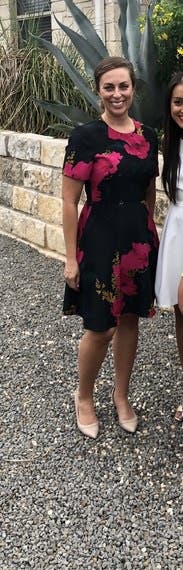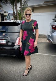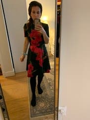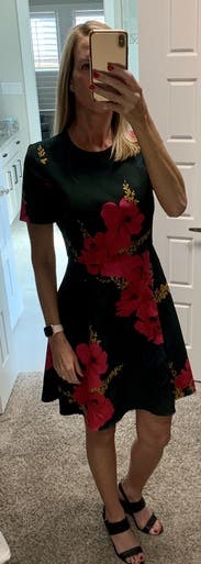 This dress was perfect for a work evening event. Fit true to size. Floral print is beautiful and eye catching.
