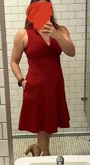 I absolutely loved this dress! Comfy, flattering fit, pockets! I felt lovely in it, my gym coach even said I looked nice. I rented the same dress in blue and am wearing it tomorrow!