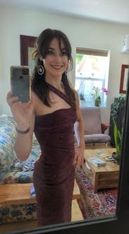 This dress made me feel so confident. I loved wearing it, and got so so many compliments! It’s TIGHT - At times it did feel a little stiff to dance in (hips down) but was fine overall! Love loved.