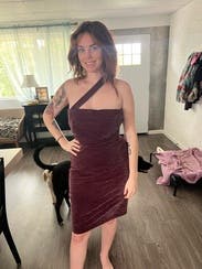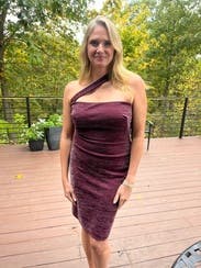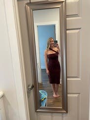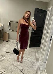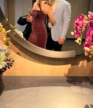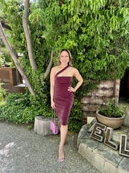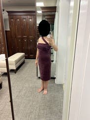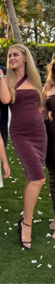This dress is sparkly fun and accentuates the curves! I was between the 0 and 2 but the 2 was loose in the top and hips and I felt I would be pulling up all night at a wedding. This was actually a backup for a dress that RTR had to cancel due to damage and it actually worked out great! Pair this with sparkly silver shoes and accessories! Lovely cranberry color with silver sparkle! Would be great in winter with a faux fur too.