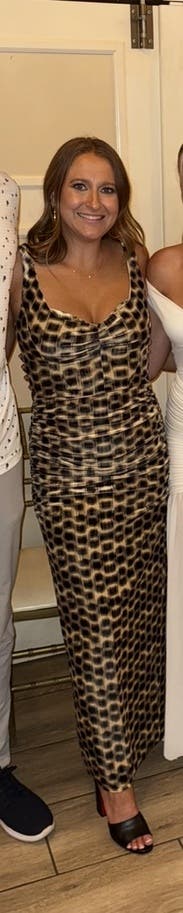 This dress was so good! Stretchy but not too big, hugged in all the right places without being tight and the print was just different enough to stand out. I’m not a fan of showing much cleavage so I’d say that’s the only downside (but I’m probably in the minority on that one). At 5’2” this is the first RTR dress I’ve rented that was the perfect length. I took my true size, not petite.