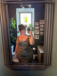 such a unique print! it's also VELVET so it was perfect for a fall wedding in Mexico. i also just love the silhouette - i have a bigger chest so the sweetheart neckline and straps that can hide a bra were absolutely perfect. i would rent this again!