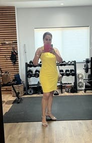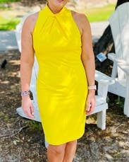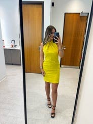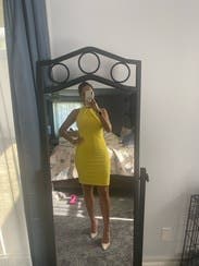 Gorgeous dress that fits perfectly true to size. Love the bright yellow color.