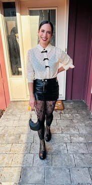 I wore this skirt for a bachelorette party on our night out, the skirt is short so I bought tights to wear with it. It fit perfect.